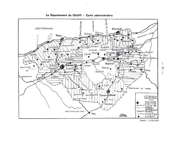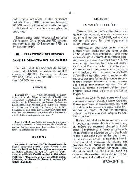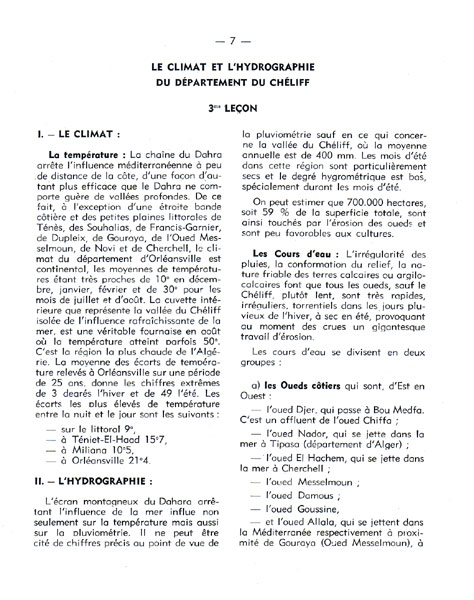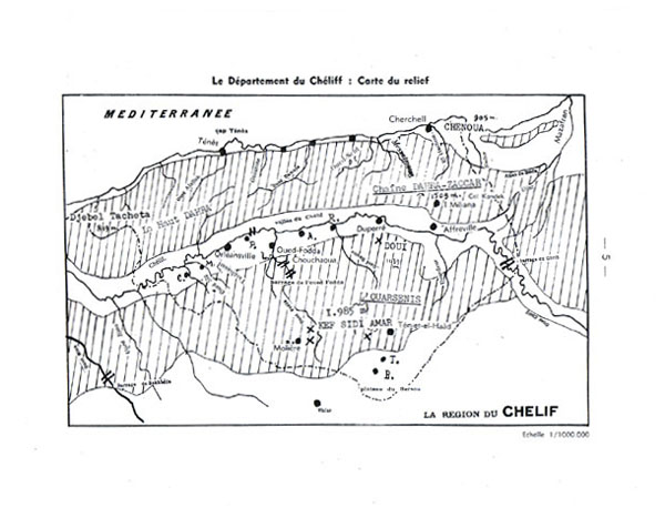 Petite Géographie du département du Chéliff par Max MARCHAND Chef du Service départemental de l'Education Nationale à Orléansville , victime de la stupide bavure d'un commando de l'OAS, le 15 mars 1962, à Alger