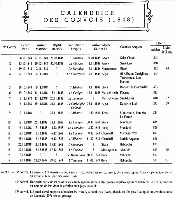 traversée Marseille - Ténès: le convoi N° 9 du 25/11/1848 |