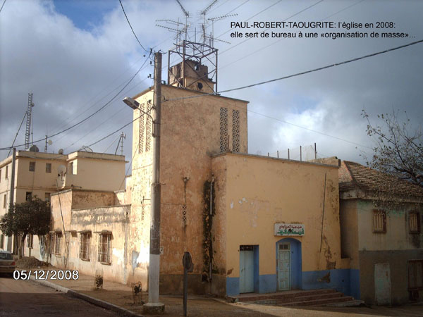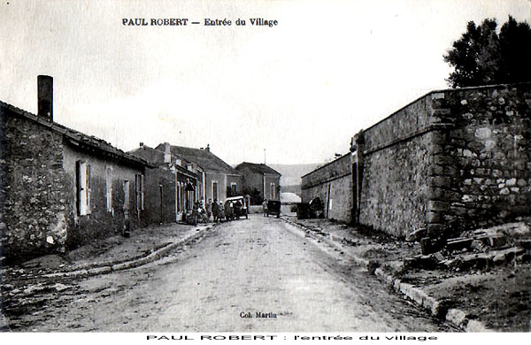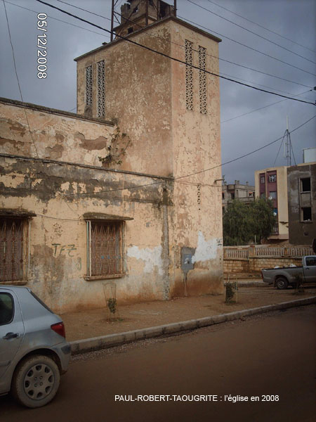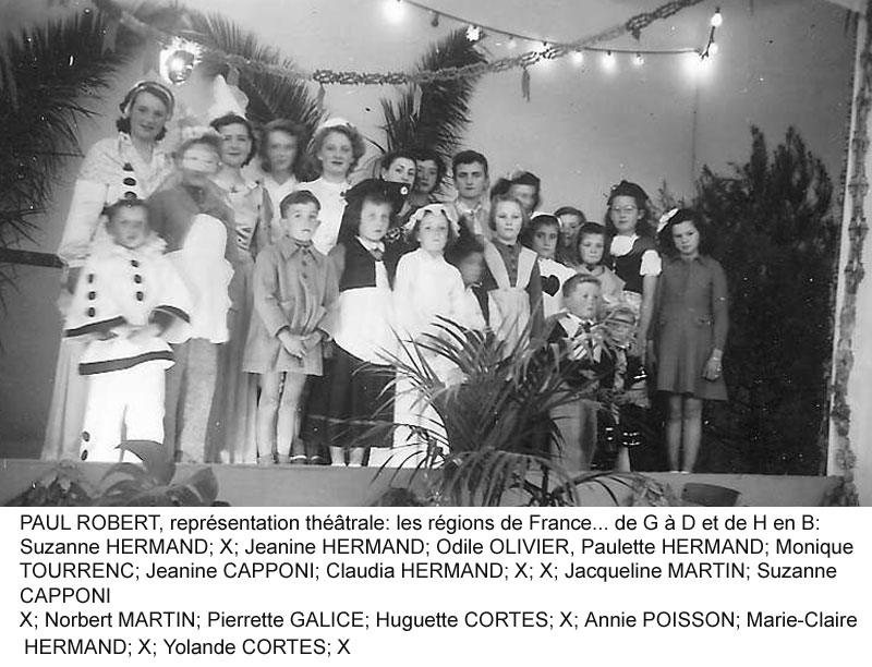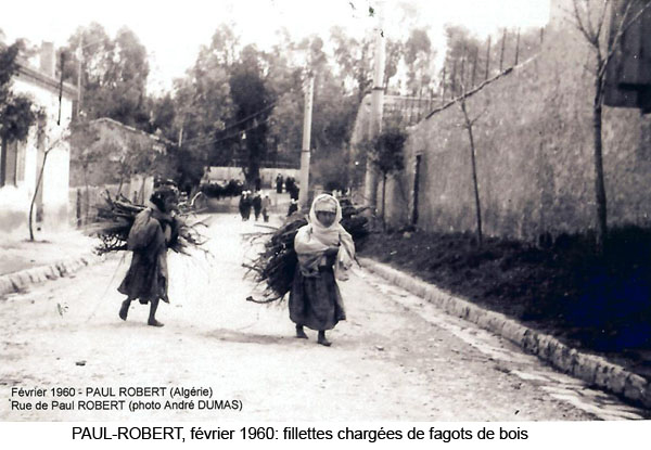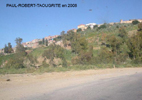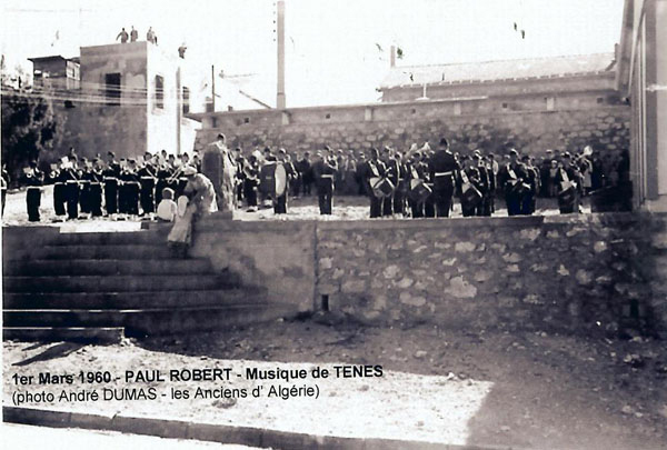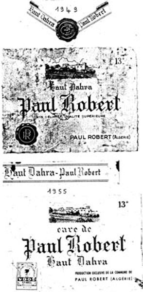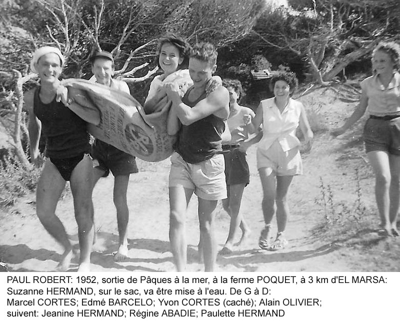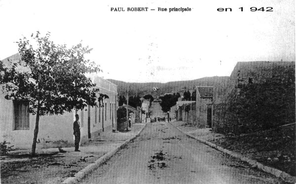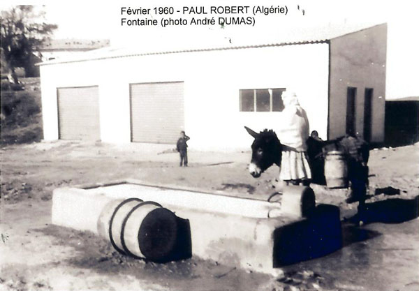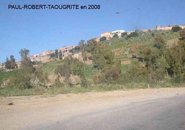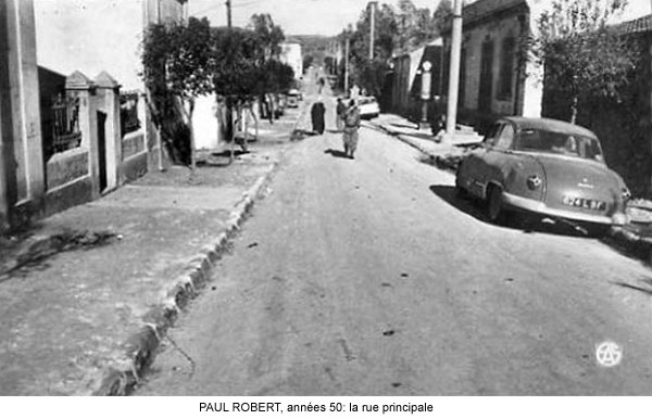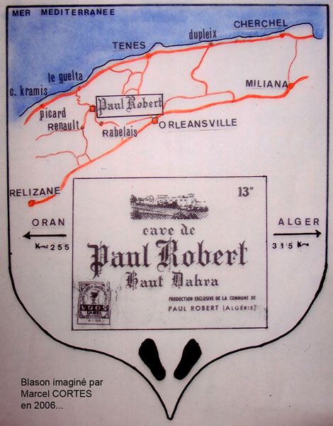 Paul ROBERT monographie La création : Un arrêté du Gouvernement Général de l'Algérie en date du 24 Septembre 1 887 envisage la création de ce village qui a été l'objet de divers projets d'aménagements, d'enquêtes, de remaniements multiples et ne sera loti qu'en 1 910 et peuplé en 1 911. Le village s'appellera TAOUGRIT jusqu'au 7 Juillet 1 913 où le nom de PAUL ROBERT lui sera attribué par le Gouverneur Général de l'Algérie en hommage au maire d'ORLEANSVILLE, Paul ROBERT, décédé au cours d'un duel. Celui-ci était l'oncle du lexicographe bien connu, Paul ROBERT. Ce centre se trouvait à l'extrémité Ouest de l'ancien Département d'ALGER (91), à environ trois km de l'ancien Département d'ORAN (92) et il appartiendra ensuite au Département d'ORLEANSVILLE (9H). Assez proche de la mer : 35 km par la D 102 pour atteindre LE GUELTA (mais 10 km à vol d'oiseau…). Le village le plus poche est AÏN SERDOUN et, à une vingtaine de km se trouvent RABELAIS et RENAULT mais il faut 60 km pour arriver à ORLEANSVILLE. Aux environs de PAUL ROBERT, il y avait des agglomérations antiques : vestiges romains abondants à l'Ouest et au Sud, à KALAA, SIDI BOU CHAÏB, SIDI ABD EL KADER, route romaine … Marcel FLORENCHIE, écrivain originaire de RENAULT, nous décrit cette région vers 1 934 avec beaucoup de poésie et d'émotion dans son livre :'Vieilles figures''. " Voici nos montagnes à l'aspect revêche, rougeâtres, aux lignes confuses, très travaillées par des érosions incessantes et d'où descendent, entre de hautes murailles d'argile, des oueds redoutables… Nous laisserons RABELAIS, paresseusement étendu dans ses sables, village au nom joyeux mais dont Pantagruel sans doute n'aurait pas bu impunément le vin velouté et capiteux. Voici RENAULT, à quelques kilomètres de MAZOUNA, campé sur une crête, le pays du vent, des sapins noirs, des meules blanches, du vin puissant et généreux. Et c'est la descente en lacets rapides vers les creux de l'Oued GRI, plaine énorme de terres fortes comme vous en trouverez rarement dans le bled algérien. A la remontée, PAUL ROBERT, anciennement TAOUGRIT, subitement rencontré derrière une crête de roches qui marque la fin du plateau trapu, escarpé, imposant, d'où les soldats romains observaient la houle profonde des blés superbes … A ses pieds, un second affaissement étendu de terres noires où l'œil surpris découvre des fonds humides garnis de saules. Lorsque vous avez dépassé le village d'une lieue et que vous vous retournez, vous avez l'impression d'un coin de PROVENCE : murailles blanches, toits de tuiles rouges, quelques arbres dans un ciel qui est généralement d'une luminosité parfaite. Sur un des côtés de l'agglomération, faisant corps avec elle, une opulente cave coopérative. Ses divers ajustements, sa tour d'angle massive, ses ouvertures supérieures allongées et peu épaisses, font penser à quelque arène de là-bas. RENAULT, RABELAIS, PAUL ROBERT, les trois villages unis par l'amitié, les parentés, la communauté d'intérêts dans la défense de vins supérieurs, mais, ici, un centre récent qui diffère de ses voisins plus vieux : pas d'église, pas de justice de paix, pas de gendarmes, pas de médecin, pas d'électricité … un esprit pratique, jeune et précis chez des gens que le crédit puis la vigne généreuse ont lancés et soutenus. " Le village de PAUL ROBERT était connu en Algérie et en France par son vin célèbre ayant obtenu des médailles d'argent en 1 951, 1 953 et 1 954 au Concours Général Agricole et, en 1 956, le premier prix au Concours Général V.D.Q.S. France-Algérie. Dans son livre ''Terres Françaises'', Marcel FLORENCHIE nous en parle et son témoignage rappelle les liens créés par la colonisation française entre nos deux communautés : " Les vins de chez nous ? Qui ne connaît leur haute et originale valeur ? Puissance et force à RENAULT, charme et finesse à RABELAIS, goût de terroir savoureux à PAUL ROBERT … Trinité de joie et d'incomparable richesse que la terre renouvelle sans jamais se lasser pour récompenser de l'émouvante fraternité qui unit dans l'effort quotidien acharné le colon et ses collaborateurs indigènes. " Le village : Quelques toits de tuiles roses où, çà et là émergent des bâtiments blancs parmi les arbres, se détachent sur un paysage de vignobles étagés et de montagnes doucement ondulées, tel apparaît PAUL ROBERT à ceux qui arrivent DU GUELTA, de RABELAIS, ou de RENAULT par des routes sinueuses et pittoresques. Bâti sur un sous-sol fortement rocheux, ''accroché à un promontoire battu par les vents'', le village est situé dans la commune mixte de TENES, arrondissement d'ORLEANSVILLE, à une soixantaine de kilomètres au Nord-Ouest, longitude Est à 1,57 gr environ, latitude Nord 36° 15 (approximativement, celle de la SICILE et de GIBRALTAR), sur une colline du Haut DAHRA qui domine la plaine de TAOUGRIT, dans l'extrémité Ouest de l'ancien Département d'ALGER, à environ trois kilomètres à vol d'oiseau du Département d'ORAN, à 48 Km d'INKERMANN, 98 Km de RELIZANE, 255 km d'ORAN et 313 km d'ALGER. Vu d'avion, PAUL ROBERT ressemble à un bateau dont la proue serait l'école, la poupe la maison et le jardin de la famille Alphonse HERMAND, à bâbord la gendarmerie (et l'ancien marché) et à tribord la cave coopérative. Le marché : En 1 911, les premiers habitants décidèrent que le marché de PAUL ROBERT aurait lieu le dimanche car le samedi, c'était à RENAULT et le lundi à RABELAIS. Il fut délimité par un ingénieur de colonisation. Les jours de grand vent, il se tenait sur la route de RABELAIS. Vers 1 938, il fut entouré d'un grillage. Le collecteur venait faire payer un droit d'entrée. Le marché était loué aux enchères par la commune mixte de TENES. Avec