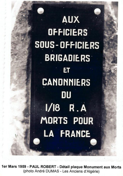 Avec l'apport de Marguerite BROCHE, Marcel CORTES et d'André DUMAS, militaire au 18 ème R.A. (adresse de son blogue :( http://algeriede1959a1961.unblog.fr)