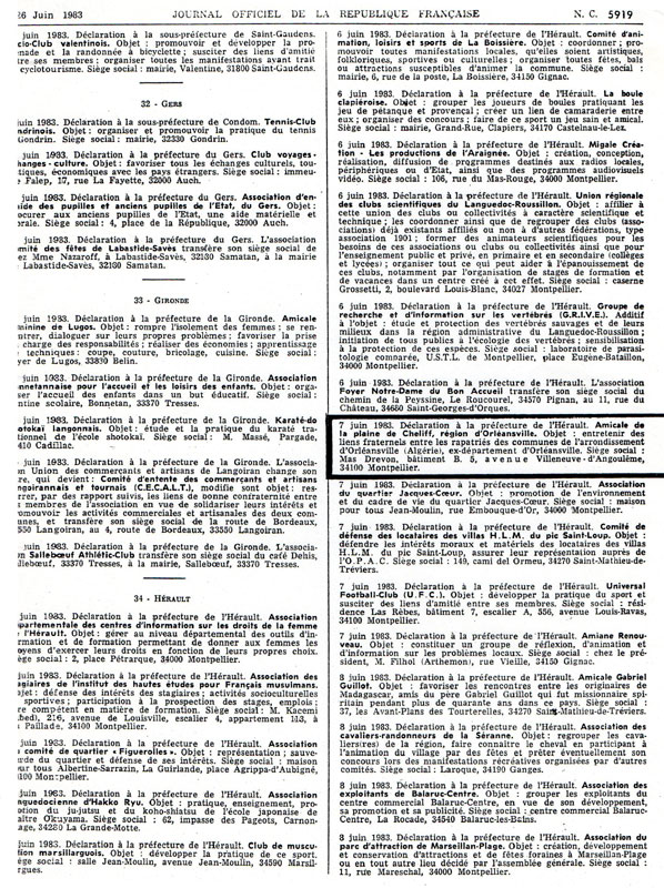 Le premier Conseil d’Administration a été déclaré le 07/06/83 à Montpellier.