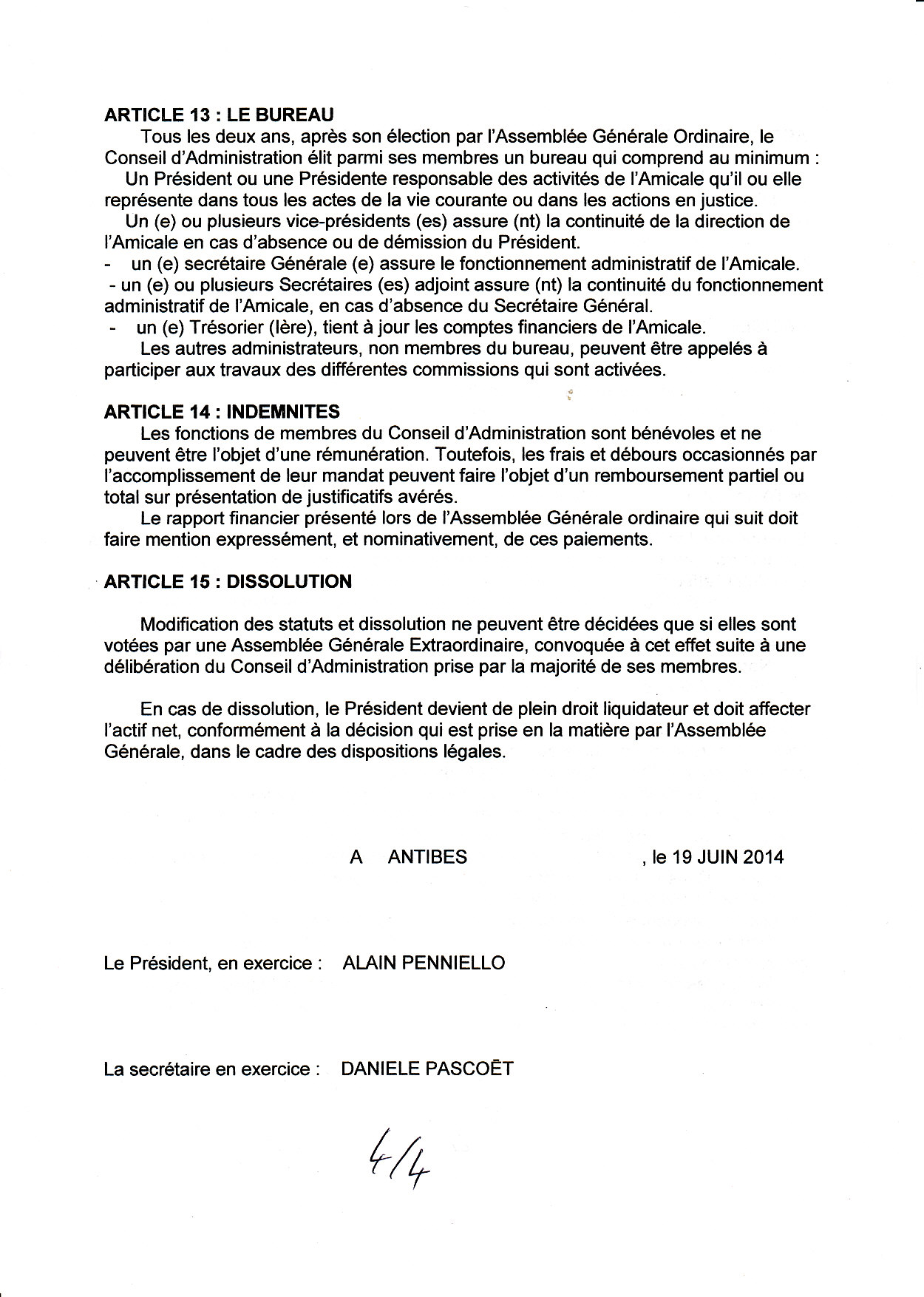 Président : Marc BERNABEU, Secrétaire : Alain PENNIELLO, Trésorière : Janine
