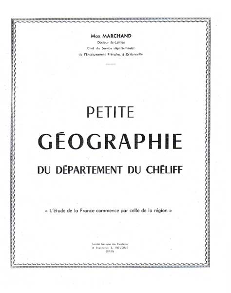 | MARCHAND Max Petite histoire du Département du CHELIFF Petite géographie du Département du CHELIFF (Ouvrages à visée pédagogique) FOUQUE, ORAN, 1959 |